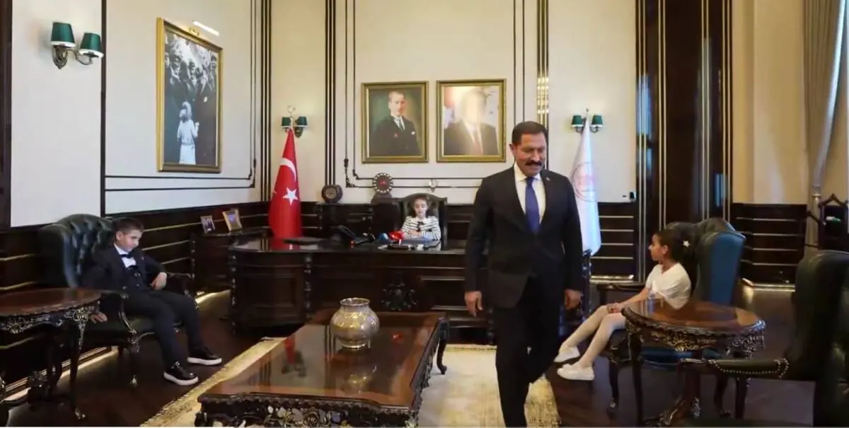 Programın en dikkat çeken anlarından biri ise temsili makam devir teslimi oldu. Vali Masatlı, makam koltuğunu 3. sınıf öğrencisi Mina Meryem Büyüaşık’a devretti. Küçük öğrenci, yaptığı konuşmada Hatay’ın yaşadığı deprem sürecine değinerek şehrin yeniden ayağa kalkma sürecinde devletin çalışmalarını yakından takip ettiklerini ifade etti.