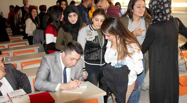 Sunum için teşekkür eden Mustafa Kemal Üniversitesi Yayladağı Sosyal Bilimler Meslek Yüksekokulu Müdürü Yrd. Doç. Dr. Cafer Tayer İşler, Yazar Ahmet Alpaslan’a plaket takdim etti. Yazar Ahmet Alpaslan, yazdığı kitapları (İnsan Okuma Sanatı, Başarıya Götüren Öyküler, Dipten Zirveye, Kullan ya da Kaybet Beyin Bedava ve Dikkat Eksikliğine Farklı Yaklaşım) öğrenciler için imzalarken, bir de söyleşi gerçekleştirdi.