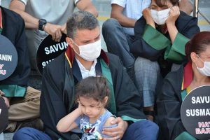 Perşembe günü Adliye binası önündeki oturma eyleminde, babasının kucağında, çevresinde olup bitenleri anlamaya çalışan minik Masal Naz’ın babası Baro Başkanı Av. Dönmez’in mesajı şöyle oldu: