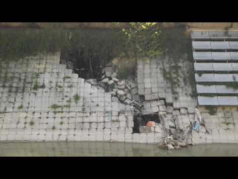 Antakya kent merkezindeki Palladium alışveriş merkezinin hemen yanı başından akan nehrin alt kısmındaki duvarda uzun zamandır var olan kırılma ve oluşan oyuğu işaret eden vatandaşlar ise olası başka bir tehlikenin varlığını sorguluyor.