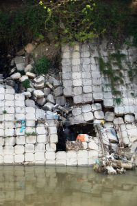 Antakya kent merkezindeki Palladium alışveriş merkezinin hemen yanı başından akan nehrin alt kısmındaki duvarda uzun zamandır var olan kırılma ve oluşan oyuğu işaret eden vatandaşlar ise