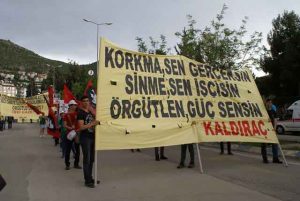 Halkın oyları ile seçilmiş siyasi parti eş başkanları, milletvekilleri ve Belediye başkanları hukuksuz bir şekilde tutuklanıyor ve ağır cezalara çarptırılıyor. Hukuksuzca tutuklanan Belediye Başkanlarının yerine Kayyumlar atanarak halkın iradesi gasp edilmektedir. İşçi sınıfı olarak bizler, yukarıda saydığımız bütün baskı ve yıldırma çabalarınızı daha fazla dirençle, daha fazla mücadele ile karşılık vereceğimizi buradan ilan ediyoruz. İşçiler, Kamu Emekçileri, Mühendisler, Doktorlar, Muhasebeciler, Çiftçiler, Köylüler, Emekliler, Esnaflar, Kadınlar, gençler ve işsizler; unutmayın biz bir araya gelirsek karanlık aydınlanacak! Zalimler yenilecek! Alın teri kazanacak. Biz Türkiye işçi sınıfıyız, biz milyonlarız. Biz kazanacağız.”