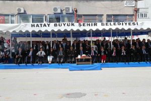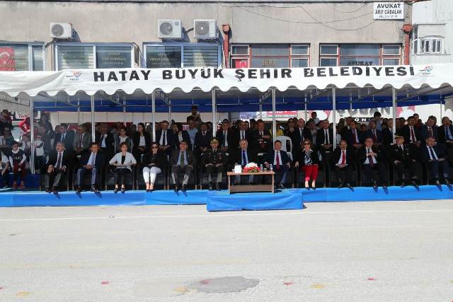 Atatürk Caddesindeki kutlama programına Hatay Valisi Erdal Ata, Hudut Alay Komutanı Piyade Albay Ahmet Gürbüz, Hatay BŞB Başkanı Doç. Dr. Lütfü Savaş, MKÜ Rektörü Prof. Dr. Hasan Kaya, Vali Yardımcıları Orhan Mardinli, Aydın Tetikoğlu, Nursal Çakıroğlu, Mahmut Hersanlıoğlu, Meral Batı Demirbaş, Antakya Kaymakamı Eflatun Can Tortop, Defne Kaymakamı Nevzat Şengök, İl Jandarma Komutan Yardımcısı J. Alb. Uğur Ertekin, İl Emniyet Müdürü Kamil Karabörk, İl Milli Eğitim Müdürü Kemal Karahan, kurum il müdürleri, öğretmenler, veliler ve çok sayıda öğrenci katıldı. Sümerler Ortaokulu öğrencilerinden Ege Koçak’ın Türk çocukları adına yaptığı konuşma ve ardından Ayşe Fitnat Ortaokulu öğrencilerinden Şevval Nur Güleç’in seslendirdiği şiir alkış topladı. İl Milli Eğitim Müdürü Kemal Karahan’ın günün anlamını belirten konuşması sonrasında Vali Ata, 23 Nisan Ulusal Egemenlik ve Çocuk Bayramı 98. yıl kutlamaları çerçevesinde düzenlenen küçükler futbol turnuvasında dereceye giren öğrencilere kupalarını verdi. Anaokulu öğrencilerinin müzik eşliğindeki gösterileri ile devam eden kutlama törenleri, ilk ve ortaokul öğrencilerinin halk oyunları, dans ve jimnastik gösteri ile son bulan program, seyircilerin Türk bayrakları ile eşlik etmesiyle coşku dolu anlara sahne oldu. -Cemil Yıldız-