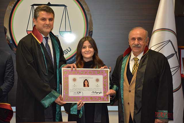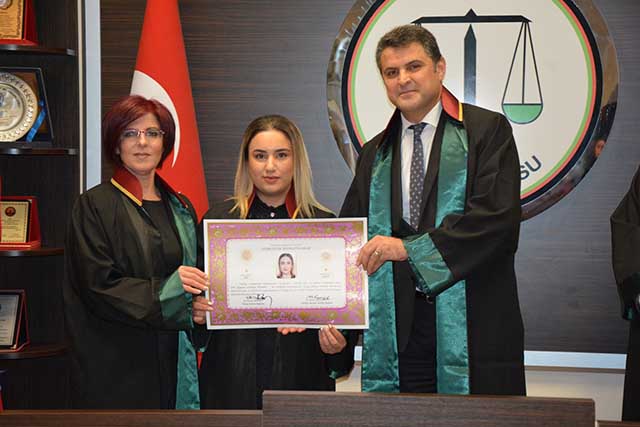Ömer Hatunoğlu’na cübbesini Av. Erol Mert Mursaloğlu, İrem Cabaroğulları’na cübbesini Av. Fevzi Dersuneli, Seher Kaya’ya cübbesini Yönetim Kurulu Üyesi Av. Şükran Güzel ve Av. Halil Hazırlar, Fatma Döner’e cübbesini Baro Başkanı Av. Ekrem Dönmez ve Baro Başkan Yardımcısı Av. Sevinç Çakıcı giydirdi.