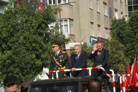 29 Ekim Cumhuriyet Bayramı’nın 95.yıldönümü dün ilimizde de görkemli törenlerle kutlandı. Dün ilk olarak Vali Erdal Ata makamında tebrikleri kabul etti, ardından 10.00’dan itibaren Atatürk Caddesi’nde geçit töreni gerçekleştirildi. Vali, Garnizon Komutanı ile BŞB Başkanı Jeep’e binerek, törene katılanların ve halkın bayramını kutladı. Atatürk Caddesi’ndeki