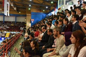 Hava yağışlı olduğu için kutlamalar son anda spor salonuna alındı.