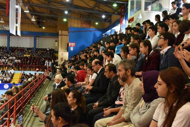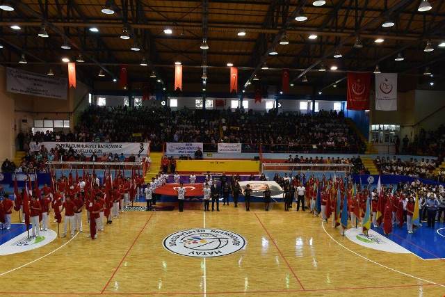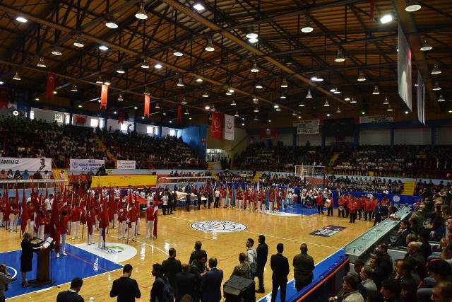 Hava yağışlı olduğu için kutlamalar son anda spor salonuna alındı.