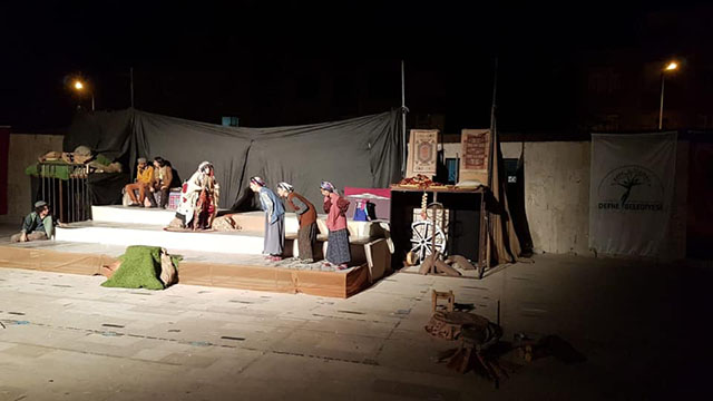 Çarşamba akşamı Defne ilçesi Sümerler amfi tiyatroda sahnelenen “Bir İsyanını Öyküsü” adlı oyun, izleyenlerden büyük alkış aldı. 23 oyuncu ve 15 figüranın yer aldığı oyun sonrasında, Ankara Orta Oyuncuları Tiyatrosu oyuncuları, tiyatro severlerle hatıra fotoğrafı çektirdi. -Selvi Günay-