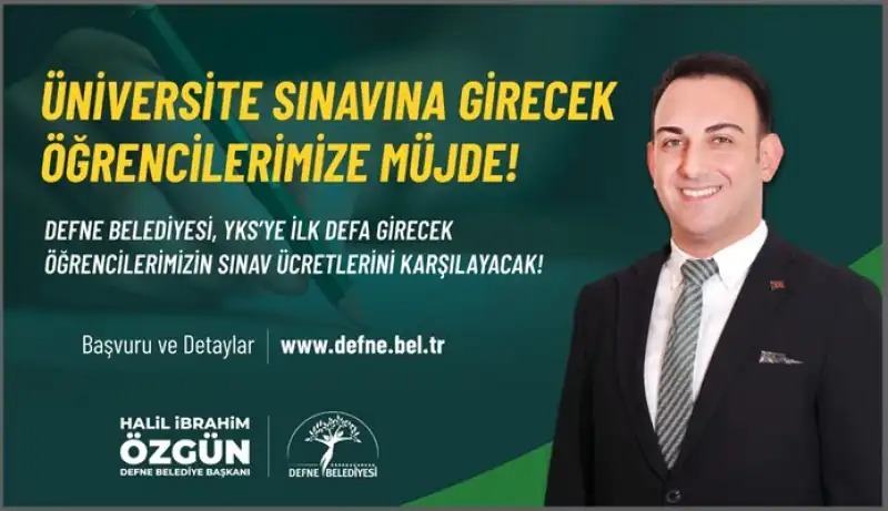 Defne Belediyesi, eğitimde fırsat eşitliğini destekleyen yeni bir uygulamayı hayata geçiriyor. 2025 Yükseköğretim Kurumları Sınavı’na (YKS) ilk kez katılacak öğrencilerin sınav ücretleri, belediye tarafından karşılanacak.
