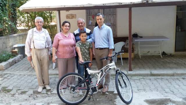 Kaymakam Nevzat Şengök önceden ilçedeki çeşitli derneklerin belirlediği yoksul, öksüz, yetim öğrencilerin evlerine kadar gitmek suretiyle bisikletlerini teslim etti.