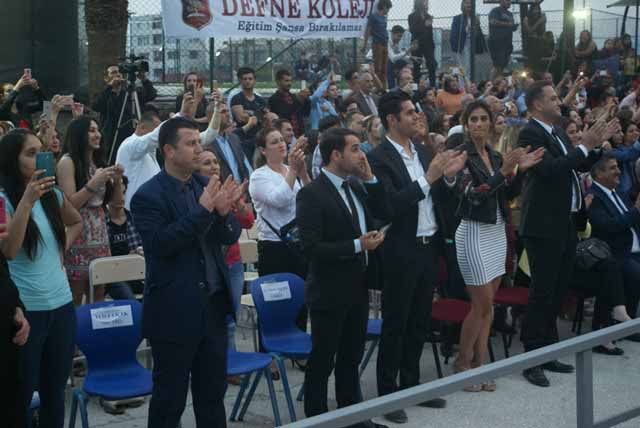 Aile bireylerinin de katıldığı mezuniyet töreninde, meşaleler eşliğindeki öğrenciler şık giysileri ile kırmızı halının üzerinden geçti, ardından konuşmalar yapıldı, ödüller dağıtıldı ve müzik eşliğinde eğlence gerçekleştirildi. Defne Koleji’nden mezun 176 öğrenci içinde en başarılı öğrencinin, diğer bir deyişle okul birincisinin ise Beren Açıkel olduğu açıklandı. Okul birincisi Açıkel hediye ile ödüllendirildi. -Cemil Yıldız-