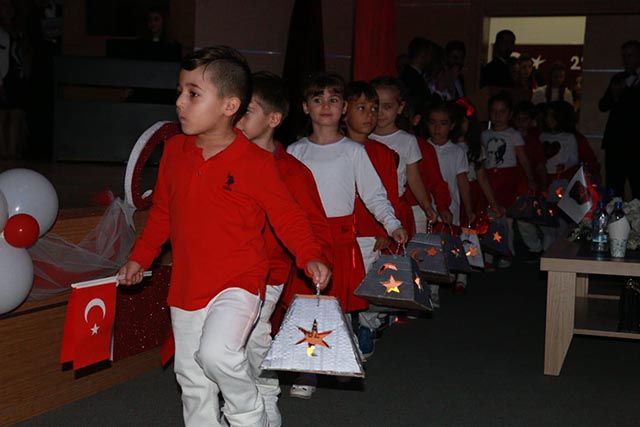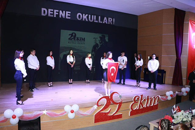 İlimiz Antakya ilçesindeki özel eğitim kuruluşlarından Özel Defne Koleji’nde, önceki akşam 29 Ekim Cumhuriyet Resepsiyonu verildi. Defne Koleji Okulu Yönetimi, etkinlikle ilgili şu bilgilendirmede bulundu: “Cumhuriyetimizin 96. Yılı şerefine Özel Defne Koleji tarafından düzenlenen Cumhuriyet Bayramı Resepsiyonu, yoğun bir katılımla gerçekleşti. Resepsiyon, Defne Koleji öğrencileri tarafından yapılan ‘Cumhuriyet’ konulu resimlerin yer aldığı resim sergisi ile başladı. Ardından nefis ikramların sunulduğu kokteyl ile devam etti. Kokteyl bitiminde, Defne Koleji öğrencilerinin hazırladığı birbirinden güzel gösterilerle gece devam etti. Günün anlam ve önemi, Okul Genel Müdür Yardımcısı İsmet Besneli tarafından güzel ve anlamlı bir konuşma ile belirtildi. Besneli, konuşmasında, ‘Cumhuriyetimizin ilanının yıldönümleri olan Cumhuriyet Bayramlarını, her yıl tüm yurtta büyük bir coşkuyla kutluyoruz. Tabi ki ülkemizin gelişmesine uygun olarak, Özel Defne Koleji Okullarımızda da büyük gelişme ve ilerleme kaydedilmiştir’ dedi. Ayrıca resepsiyona katılım gösteren Vali Yardımcımız Sayın Aydın Tetikoğlu, Hatay Büyükşehir Belediye Başkan Vekilimiz Sayın Adnan Özkaya ve diğer protokol üyeleri, okul velileri, öğretmen ve yöneticiler, gösterileri coşkuyla izlediler.”