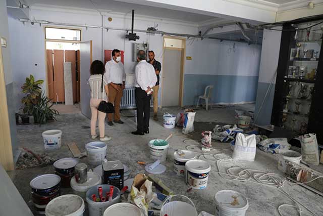 Pandemi nedeniyle hazırlıklarını yoğunlaştırarak sürdüren ilimizdeki birçok okulda onarım, tadilat ve boyama işlemleri sürerken, diğer okullar da dezenfektan işlemini yaparak