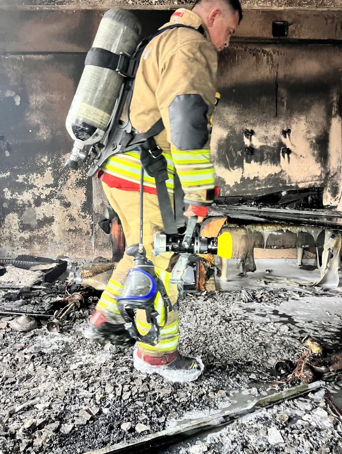 Yangın nedeniyle evde maddi hasar oluşurken, olayla ilgili inceleme başlatıldı.