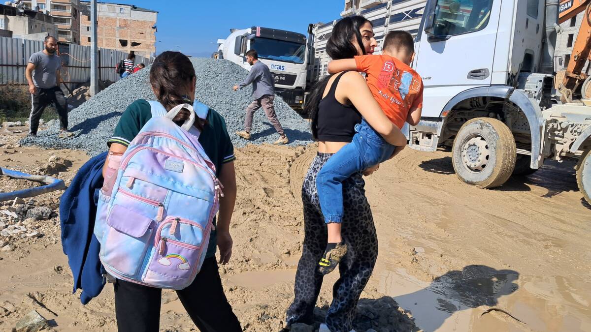 Depremin üzerinden 33 ay geçmesine rağmen Hatay’ın Defne ilçesinde yaşam hâlâ normale dönemedi. Çekmece Mahallesi’nde süren inşaatlar ve tamamlanmayan altyapı nedeniyle mahalle yolları çamur içinde kaldı. Sabah saatlerinde okula gitmeye çalışan öğrenciler, çamur deryasında düşe kalka yürümek zorunda kalıyor.