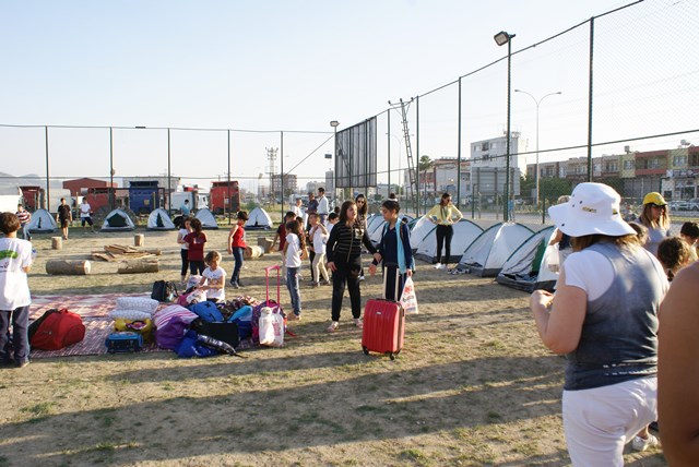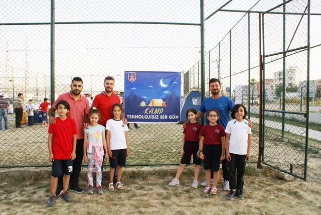 Defne Koleji okul bahçesinde gerçekleşen ‘kamp’ kapsamında teknolojiden uzak bir gün geçiren ilk ve ortaokul öğrencileri, yakılan kamp ateşinin etrafında şarkılar söylediler.