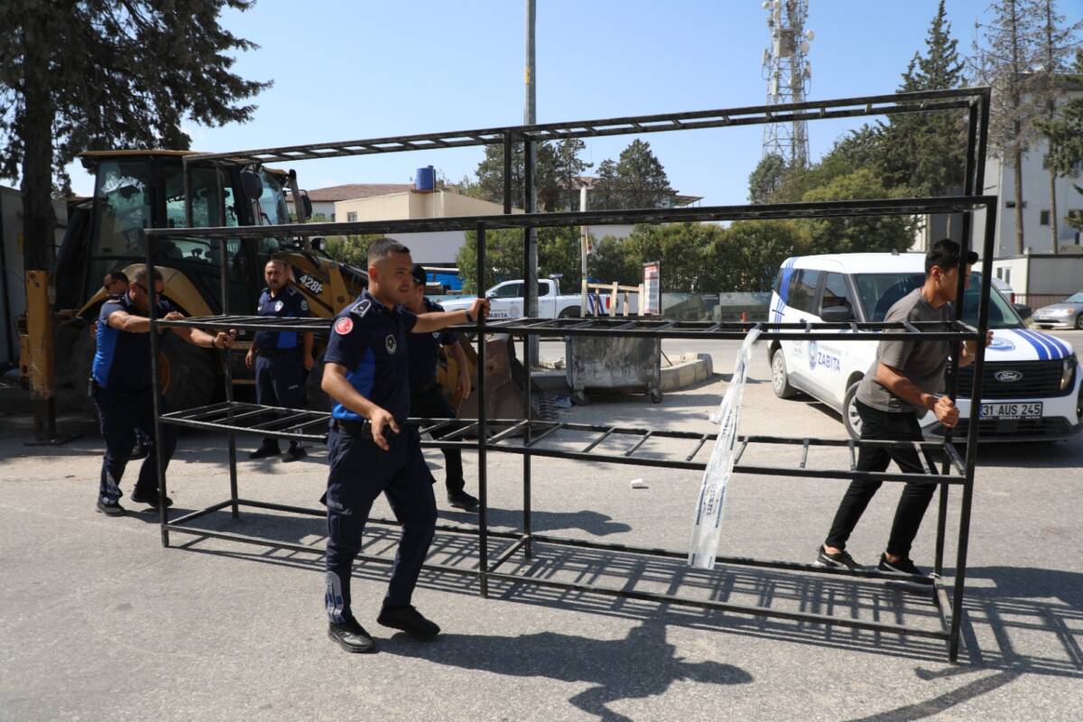 HBB, deprem sonrası Antakya Sanayi Sitesi’nde gelişi güzel yerleştirilen konteyner ve barakaları kaldırarak şehir düzenini sağladı. Zabıta ekipleri, vatandaşlara ücretsiz destek verdi.