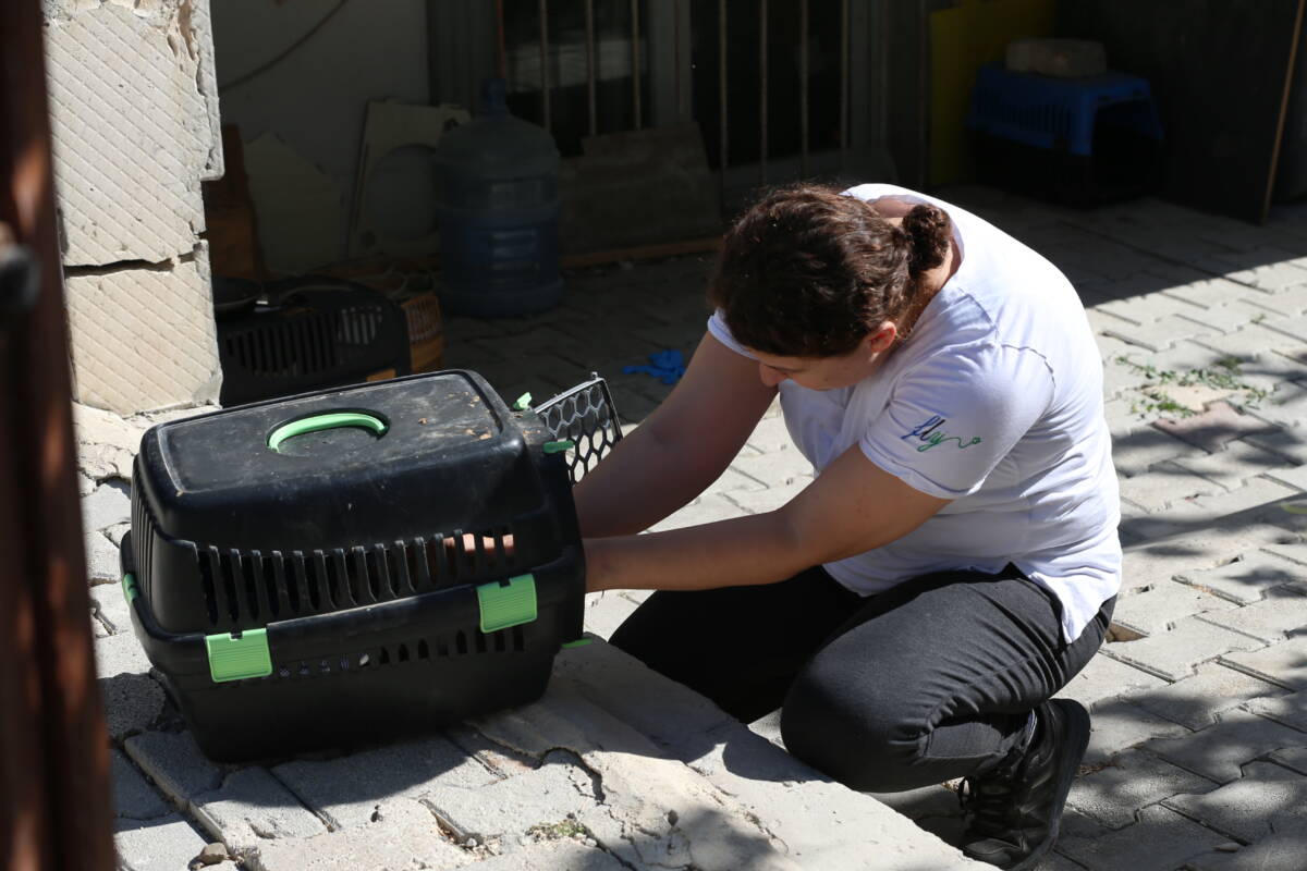 Depremlerden etkilenen Hatay’da iki çocuk annesi Canan Göçmen, çok sayıda sahipsiz kedinin bakımını üstleniyor. ( Mehmet Bayrak – Anadolu Ajansı )