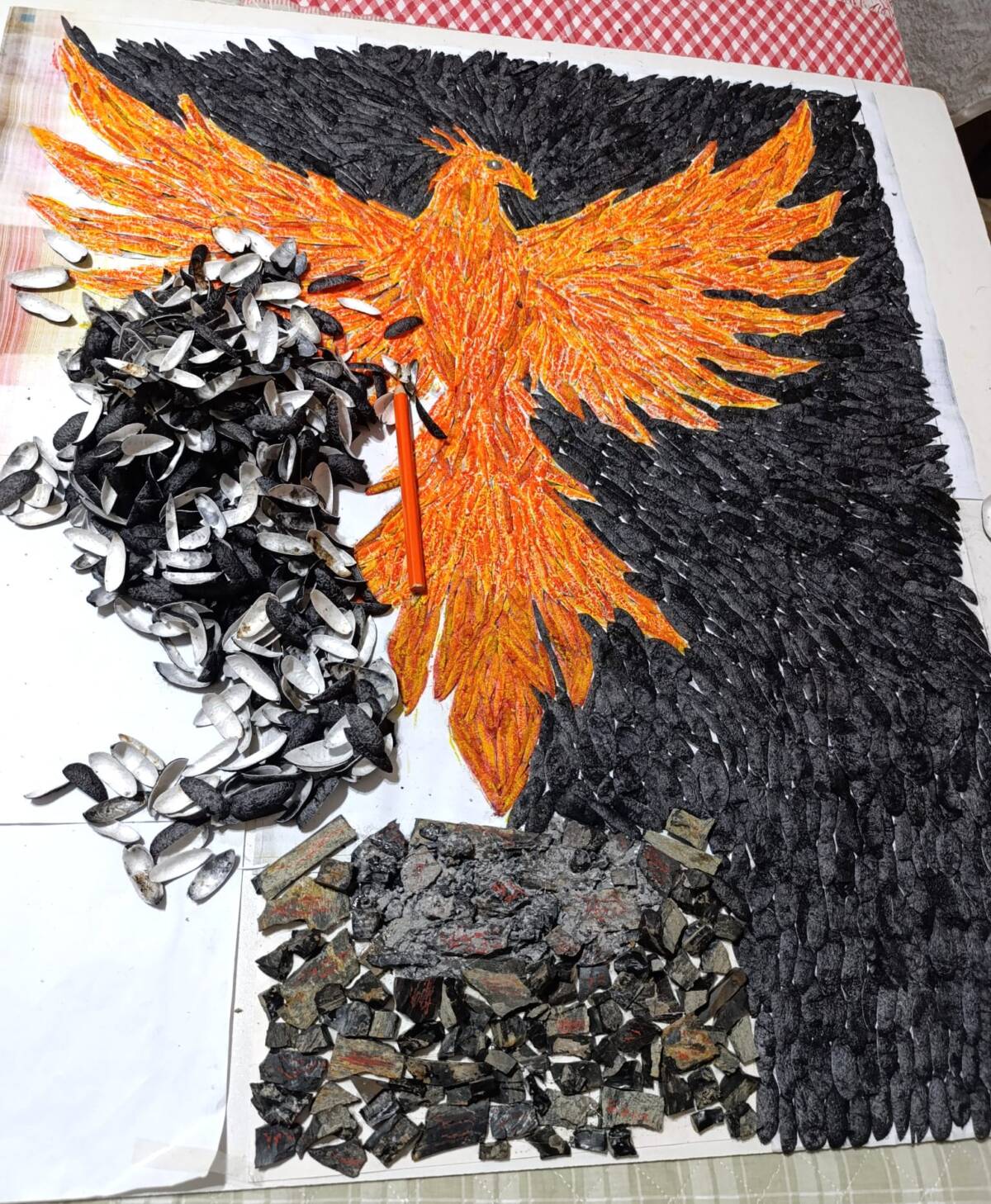 “2023 yılında hepimizin yaşadığı asrın felaketinin ardından, Nisan ayında uyandırdığımız ipek böceklerimizin kozalarından ve oltu taşlarından bir Anka Kuşu tablosu oluşturmak istedim. Anka Kuşu, yaşamın döngüsünü ve yeniden doğuşu simgeler. Tıpkı bu kuş gibi, Hatay’ın da küllerinden tekrar doğacağına tüm kalbimle inanıyorum. Eserimi Sayın Kaymakamımıza takdim etmenin mutluluğunu yaşıyorum. Destekleri için Defne Belediye Başkanı Halil İbrahim Özgün ve Kültür Müdürü Turgut Nurlu’ya teşekkür ederim.”