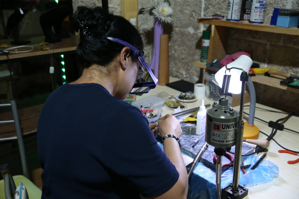 Hatay’da uzun yıllar boyunca kuyumculuk teknolojisi alanında usta öğreticilik yapan 51 yaşındaki Seval İncirbölen, yaşadığı acıları geride bırakmak için mesleğine sarıldı. Hem Erzincan hem de Kahramanmaraş merkezli depremlerde yakınlarını kaybeden İncirbölen, şimdi Hatay’ın tarihi Payas ilçesindeki 451 yıllık Sokullu Mehmet Paşa Külliyesi’nde açtığı atölyesinde üretmeye devam ediyor.