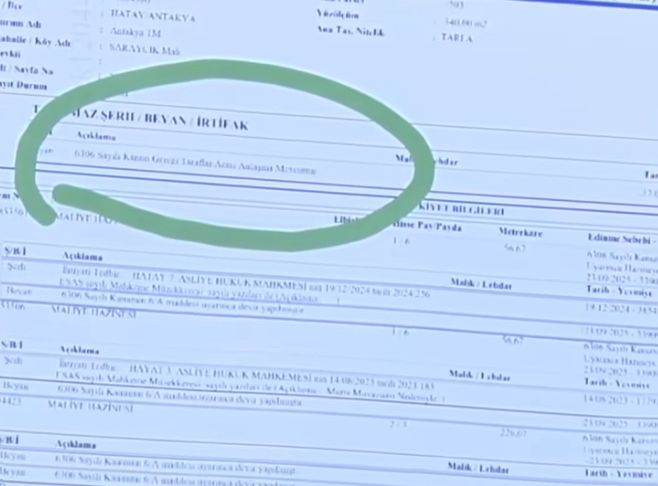İnan, mülklerinin kendilerinden habersiz şekilde devlet envanterine dahil edilerek “rezerv alan” ilan edildiğini öğrendiklerini belirterek, tapu kayıtlarında yer alan “6306 Sayılı Kanun gereği taraflar arası anlaşma mevcuttur” ibaresine dikkat çekti.