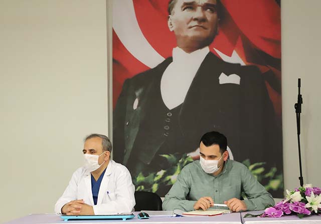 Başhekimlik Toplantı Salonu’nda düzenlenen etkinlikte, hastanenin Covid-19 ile olan genel işleyiş ve çalışmaları değerlendirildi. Toplantıya; Acil Servis Sorumlu Hekim, Yoğun Bakım Ünitesi Sorumlu Hekimleri ve Enfeksiyon Komitesi Sorumlu Hekimi de katılım sağladı. -Selvi Günay-