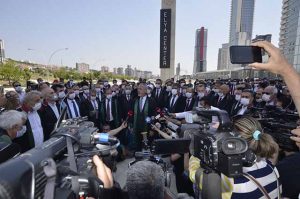Hatay Barosu Başkanı Av. Ekrem Dönmez’in de aralarında olduğu 58 Baro Başkanı ile çok sayıda Avukatın, savunma yürüyüşünde polis engeliyle karşılaşması sonucu başlattığı oturma eylemi sonuç verdi ve Baro Başkanları, planladıkları gibi Anıtkabir’e çıktı.