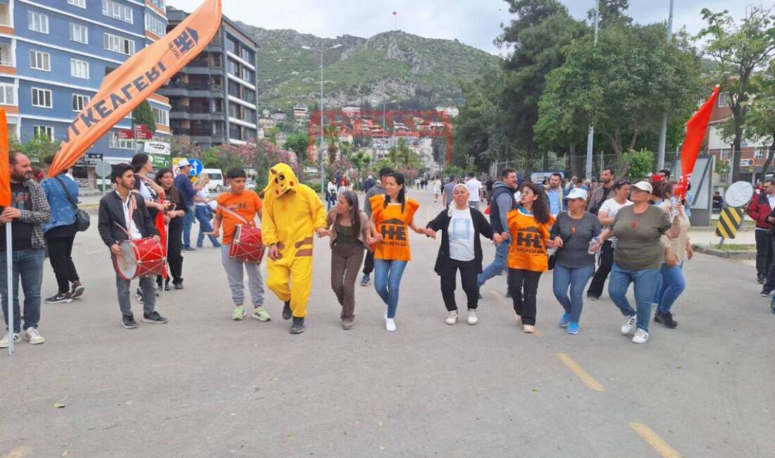 Hatay’ın Antakya ilçesinde 1 Mayıs Emek ve Dayanışma Günü, coşku ve yaratıcılığın buluştuğu renkli karelere sahne oldu. Halkevleri üyeleri ve vatandaşlar, yürüyüş sonrası davul-zurna eşliğinde halaylar çekerek 1 Mayıs’ı kutladı.