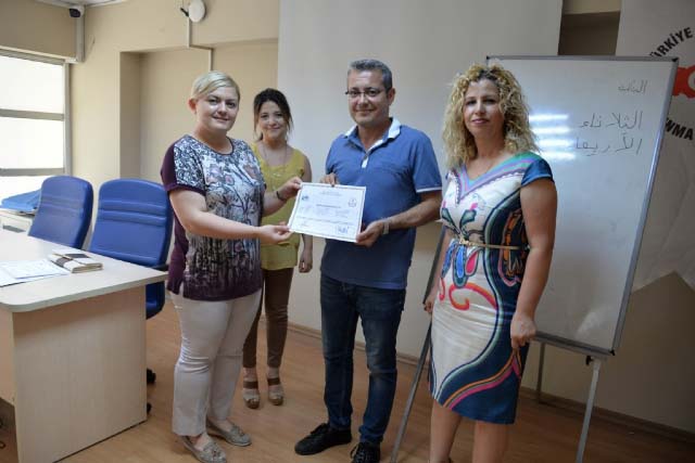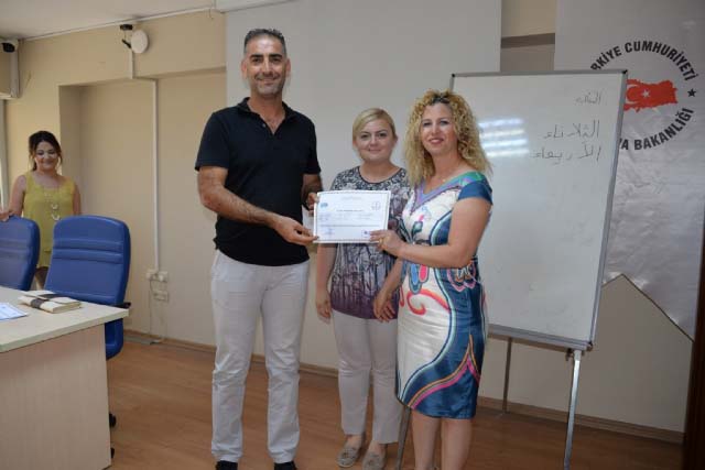 Doğu Akdeniz Kalkınma Ajansı (DOĞAKA) ve Hatay İl Milli Eğitim Müdürlüğü işbirliğinde düzenlenen Arapça Eğitimlerinin Düzenlenmesi İşbirliği Protokolü çerçevesinde, Defne ilçesinde yer alan kamu kurum ve kuruluşları yöneticileri ve personeline yönelik Temel Arapça Eğitimi önümüzdeki süreçte ikinci aşama şeklinde yenilenecek. Geçtiğimiz ay gerçekleşen ilk etap Arapça kursunu tamamlayanlara yönelik Sertifika töreninde, A1 Seviye Arapça Eğitimini 136 saatlik eğitim dahilinde almaları neticesinde, toplamda 16 kursiyere “Temel Seviye Arapça Eğitimi” Kurs Bitirme Belgesi takdim edildi. DOĞAKA-Milli Eğitim Müdürlüğü işbirliği ile söz konusu eğitime katılım sağlayan kursiyerler, eğitim kapsamında Arapça dilinde okuma, yazma, dinleme ve konuşma becerilerinin gelişmesinde fayda katkı sağlandığını belirtirken, bazı kursiyerler, Ajansın diğer faaliyetleri hakkında bilgi alma fırsatı buldu. Kursiyerlerin, sertifika töreni sırasında, ilerleyen süreçte ileri düzeyde Arapça Eğitimi talebinde bulunduklarını DOĞAKA yetkililerine aktardıkları öğrenildi. -Gökay Gökdemir-