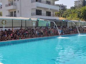 Defne Belediye Başkanı İbrahim Güzel, dün günün önemli bir bölümünü spor tesislerini ziyaretle geçirdi. Başkan Güzel, Büyükşehir Başkanı Lütfü Savaş ile önce Çekmece sahasında incelemelerde bulundu, ardından Dursunlu’ya gitti ve buradaki tesisleri gezdi, yüzme havuzundaki kursiyer çocuklarla ve velileriyle bir araya geldi. Çok büyük bir kalabalık tarafından karşılanan İbrahim Güzel, istek üzerine de öğrencilere, konuklara ve velilere dondurma ikramında bulundu. Etkinliğe katılanlar, bedava dondurma ikramına ‘hayır’ diyemedi.