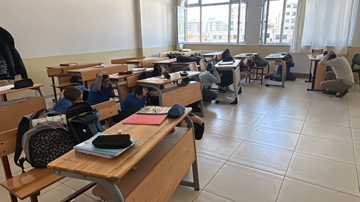 Dörtyol’daki tatbikat, hem öğrencilerin farkındalığını artırmayı hem de olası bir deprem durumunda doğru hareket etmelerini sağlamayı hedefliyor.