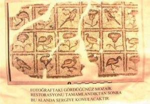 Müze’nin belki de en çok tartışılan mozaiği olan ‘İSİS’ mozaiğinin olduğu alanın hemen yanı başından yukarıya doğru uzanan merdivenden 2. kata doğru çıktığınız mı hiç? Çıkın… Sizi bir koridor bekliyor orada ve o koridor boyunca duvara ekli mozaikler. Bir de, üzerinde, ‘Fotoğraftaki gördüğünüz mozaik, restorasyonu tamamlandıktan sonra bu alanda sergiye konulacaktır’ notları olan kağıtlar. Bu ‘not’ kısmını anladık da, duvarlara ekli diğer mozaikler için neden hiçbir bilgilendirme yok, bunu anlayamadık. ‘Henüz bitti, duvara da henüz astık’ durumu mu?