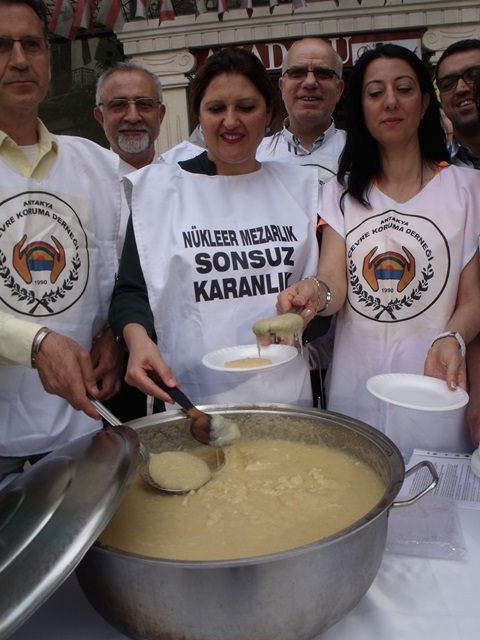 Antakya Çevre Koruma Derneği Başkanı Selda asker ve dernek yönetim kurulu üyeleri, Çernobil Faciasının 31. Yıldönümü nedeniyle önceki gün Saray caddesinde bir araya geldi, pişirdikleri bir kazan dolusu helvayı vatandaşlara dağıttı. Antakya Çevre Koruma Derneği Başkanı Selda Asker, etkinlikle, dünyanın sonunu getireceğine inandıklarını belirttiği nükleer enerjinin tehlikelerine dikkat çekmek istediklerini söyledi, ülkemizde kesinlikle nükleer santral istemediklerini bir kez daha vurguladı.