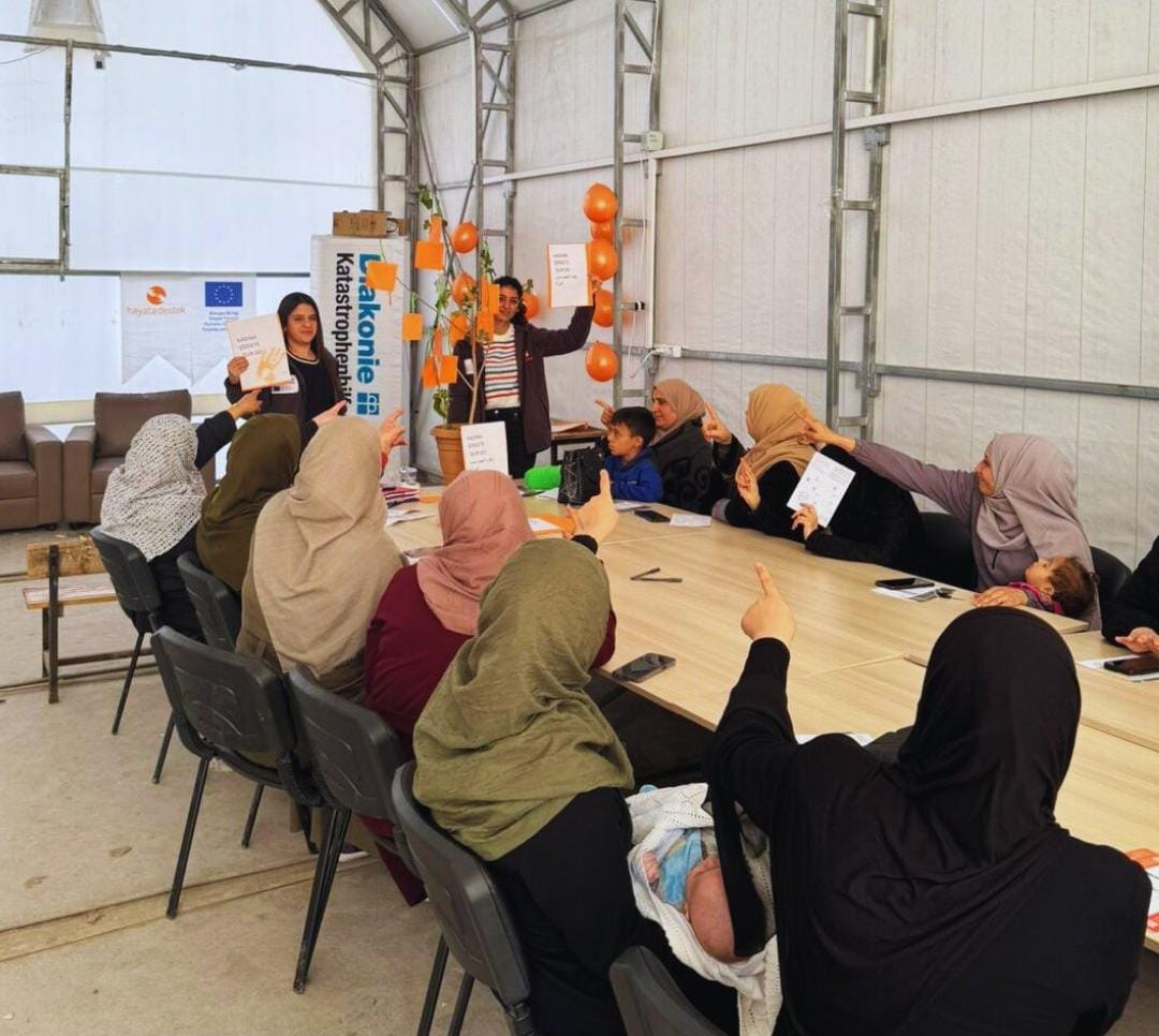 Dernek ekipleri, Hatay’daki konteyner kentlerde yaşayan kadınlarla da bir araya gelerek şiddete karşı haklar, başvuru mekanizmaları ve destek hizmetleri hakkında bilgilendirme oturumu düzenledi.