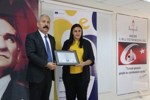 Hatay İl Milli Eğitim Müdürlüğü bünyesinde yaptıkları çalışmalarla öğretmenlerin almış olduğu 78 Ulusal Kalite Etiketi, 36 Avrupa Kalite Etiketi ve 5 eTwinning Schools Ödülü olmak üzere, toplamda 119 eTwinning Ödülü, İl Milli Eğitim Müdürü Kemal Karahan’ın katılımlarıyla takdim edildi.