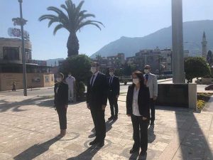Dün sabah, meslek mensuplarını temsilen Başkan Ecz. Sedat İlkin Aközcan ile 4 üye, birlikte Atatürk Anıtı’na çelenk sundu ve saygı duruşunda bulundu. Koronavirüs salgınına karşı sosyal mesafe dolayısıyla diğer yönetici ve üyelerin gelmesine izin vermeyen Hatay Eczacı Odası adına Başkan Aközcan, yapığı açıklamada, her sene 14 Mayıs’ı belirli temalar çerçevesinde, tüm Eczacı Odalarıyla birlikte “hafta” olarak kutladıklarını hatırlatarak, “Bu sene, içinden geçtiğimiz pandemi sürecini de göz önüne alarak, salgın hastalıklarda eczacının rolüne odaklandık ve temamızı da ‘Hastalıkta Sağlıkta Eczacınız Yanınızda’ olarak belirledik” dedi.
