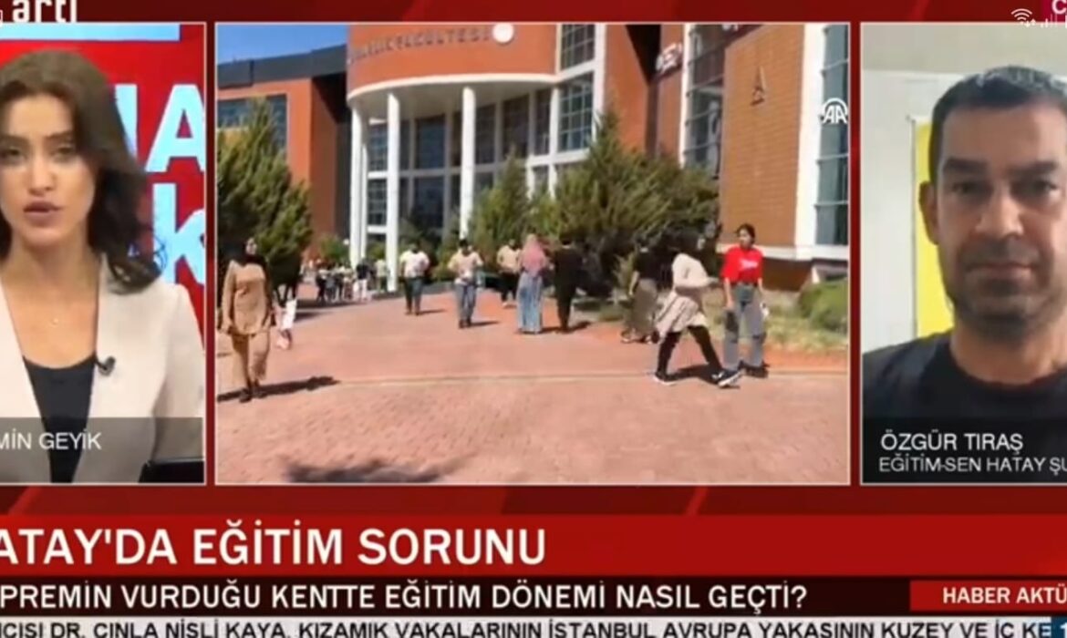 Hatay Eğitim-sen Şube Başkanı Özgür Tıraş Hatay’da yaşanan eğitim öğretim ile sıkıntıları konuşmak üzere Artı Tv Haber Aktüel programına katıldı.
