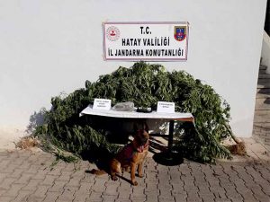 Hatay İl Jandarma Komutanlığı tarafından, kaçakçılıkla mücadele kapsamında 7 Ekim 2021 tarihinde icra edilen faaliyet sonucunda, Yayladağı İlçesi Sebenoba mahallesinde ikamet eden A.Y. ve A.E. ile Defne ilçesi Döver Mahallesi’nde ikamet eden İ.E. isimli şahısların uyuşturucu madde kaçakçılığı yaptığı bilgisi alındı. Konuyla ilgili, Yayladağı ve Defne İlçe Jandarma Komutanlığı tarafından, Jandarma dedektifleri (JASAT) ile (Öğle) ve (Tonaj) isimli narkotik arama köpekleri desteğiyle, şüphelilere ait ev ve eklentilerinde yapılan arama sonucunda, 4.260 gr. uyuşturucu madde olduğu değerlendirilen, kubar esrar maddesi 3 kök kenevir bitkisi ile 3 adet ruhsatsız av tüfeği ele geçirildi, şüpheliler gözaltına alındı.