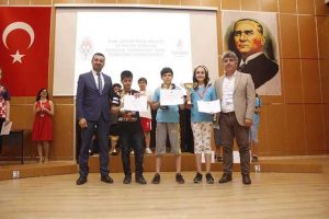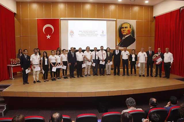 Özel Ekin Koleji’nde, yine bu okulun ev sahipliğindeki ödül törenine; Vali Yardımcısı Aydın Tetikoğlu, İl Milli Eğitim Müdürü Kemal Karahan, Defne Belediye Başkan Yardımcısı Girne Mansuroğlu, İlçe Milli Eğitim Müdürü Kemal Gülistan, Defne İlçesi Gençlik ve Spor Müdürü Sedat Öntürk ile veliler katıldı