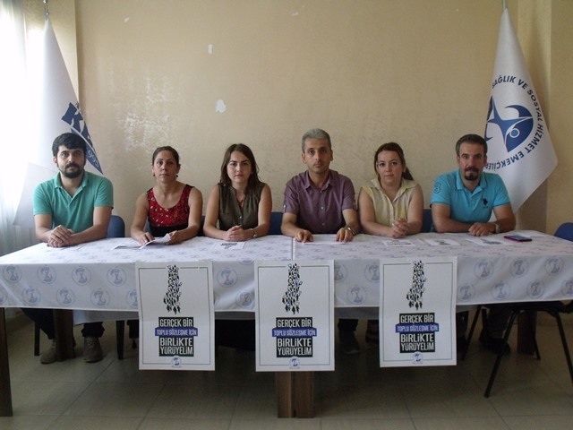4688 sayılı yasa başta olmak üzere gerçek bir toplu sözleşmenin önündeki tüm yasal ve fiili sınırlılıkların kaldırılmasının önemine değinen Uslu, “Uluslararası sendikal haklara ve sözleşmelere uygun olarak mevzuat yeniden düzenlenmeli; sendikal örgütlenme özgürlüğü sınırsız olarak sağlanmalı ve güvence altına alınmalı; iktidarların sendikalar üzerindeki her türlü ilişkisi-tarafgirliği ve baskısı ortadan kaldırılmalıdır. Sendikamız, gerçek bir toplu sözleşme hakkı için fiili mücadelesini sürdürecektir. Bu yıl gerçekleşecek olan toplu sözleşme görüşmeleri OHAL koşullarında, sendikal faaliyetler ve kamu emekçilerinin üzerinde baskının alabildiğine arttığı, sağlık ve sosyal hizmet emekçilerinin sorunlarının artarak biriktiği, ayrıca haklarımıza yönelik yeni kapsamlı saldırıların gündemde olduğu bir süreçte gerçekleştirilecektir. KHK’lar ile 100 binden fazla kamu emekçisinin bir gecede, herhangi bir gerekçe dahi gösterilmeden ihraç edildiği ve kamu emekçilerinin iş güvencesinin fiilen ortadan kaldırıldığı bir süreçte gerçekleşecektir. Kamu emekçilerinin zaten sınırlandırılan iş güvencesinin tamamen kaldırılması için kamu personel rejiminde ve 657 sayılı yasada kalıcı düzenlemeler yapılarak, KHK’lar ile oluşturulan güvencesizliğin yasal olarak kalıcı hale getirilmesi planlandığı, bu yönde mevzuat hazırlıklarının sürdüğü bir süreçte toplu sözleşme görüşmeleri yapılacaktır. Önceki Sağlık Bakanlarından olan, şimdi ise Çalışma ve Sosyal Güvenlik Bakanı olan Mehmet Müezzinoğlu da bu kapsamlı saldırıyı ‘memurluk tapulu mal gibi olmayacak’ diyerek özetlemiş, hem gerçekleri çarpıtmaya çalışarak sonsuz bir iş güvencesi varmış gibi kamuoyunu yalıtmaya çalışmış, hem de aslında ne yapmak istediklerini açık olarak ifade etmiştir” dedi.