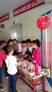 Her öğrenci, evinden getirdiği gıda maddesini (pasta ve börek gibi), hikâye ya da öykü kitaplarını ve hatta fazla oyuncaklarından bir ikisini, okul içinde hazırlanan alanda satışa sundu ve hedefi ‘yardım’ olan imeceyi de, Hatay’daki yanlış örneklerin kıyısında, büyükleri ile paylaştı.