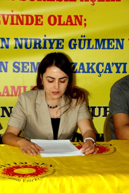 Hatay Eğitim Sen Hatay Şubesi’nde bir araya gelen Eğitim ve Demokrasi Güçleri adına yapılan dünkü basın açıklamasını okuyan Özden Özgünel, “Darbe hukuku, mevcut Anayasa’yı da ayaklar altına alarak, iktidarın ihtiyacına göre işlemeye devam ediyor” dedi. Başlattıkları açlık grevinin 75. gününde gözaltına alınan Eğitim-Sen üyesi Semih Özakça ve Nuriye Gülmen’nin tutuklanmasına da değinen Özgünel, “Tutuklama gerekçelerinin hukuki bir yanı olmamakla beraber, açıkça, siyasal iktidarın ve polis devletinin talimatı sonucu olduğu görülmektedir. Devlet, ‘Ben seni aç bırakırım… Patronun da seni aç bırakabilir… Ama sen kendini aç bırakırsan bu terör propagandasıdır’ diyerek, tutuklama ile hukuku, insan yaşamını ve onurunu bir kez daha ayaklar altına almıştır” diye konuştu.