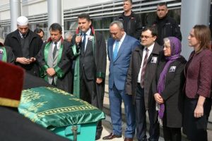 gerçekleşti. Cenaze törenine; Hatay Cumhuriyet Başsavcısı Ahmet Tekne, Cumhuriyet Başsavcı Vekili Atalay Aygeç, 1. Ağır Ceza Mahkemesi Başkanı Okan Demirci, Vergi Mahkemesi Başkanı Ufuk Sunaoğlu, Hatay İdare Mahkemesi Başkanı Songül Meydan Özdoğan, Baro Başkanı Ekrem Dönmez, önceki dönem Baro başkanlarından Nabi İnal ile Sinan Akgöl, Avukat, Hakim ve Savcılar, Adliye çalışanları ile merhumun yakınları katıldı. Cenazesi daha sonra camiye getirilen, emekli Askeri Hakim-Savcı İnayet Taş, aynı gün toprağa verildi.