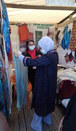 Defne İpeğini yakından bildiğini ve daha önce de ipek ürünlerinden aldığını belirten Emine Erdoğan, Kültür ve Turizm Bakanlığı İpek Dokuma Sanatçısı Tülay Genç’in Defne Belediyesi Koza Evi’nde ürettiği kaliteli ürünlerle başarılı bir girişimci kadın olduğunu ifade etti. Defne Belediyesi Koza Evi standında sergilenen ipek ürünleri hakkında Emine Erdoğan’a geniş bilgiler veren Tülay Genç, daha sonra kendisine ipek şal hediye etti. Mehmet ÖZGÜN