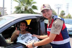 “Kemerin Ses Getirsin” kampanyasına dikkati çekmek için farklı bir yol izlediklerini anlatan Üstüner, “Kampanya dahilinde değişik bir yöntemle, Hatay İl Jandarma Komutanlığı