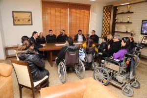Bir grup engelli, tekerlekli sandalyeleriyle birlikte önceki gün Büyükşehir Belediye Başkanlığı makamına çıktı. Başkan Lütfü Savaş’ın zaman zaman ziyaret kabullerinde kullandığı HATMEK merdivenlerini yardımla aşabilen engelliler, makamda Başkan Savaş ile bir süre görüştü, sorunlarını ve isteklerini aktardı.