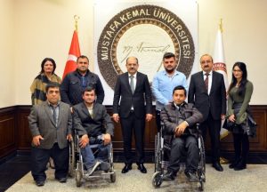 Mustafa Kemal Üniversitesi (MKÜ) Rektörü Prof. Dr. Hasan Kaya, 3 Aralık Dünya Engelliler Günü vesilesiyle Hatay Engelsiz Yaşamı Sevenler Derneği Başkanı Mehmet Mustafa Canbulat ve Dernek üyelerini makamında kabul etti. Ziyarette, Derneğin faaliyet gösterdiği sosyal aktiviteleri anlatan Dernek Başkanı Mehmet Mustafa Canbulat, Rektör Prof. Dr. Hasan Kaya’yı, 3 Aralık Dünya Engelliler Günü münasebetiyle 9 Aralık Cumartesi günü düzenlenecek “Umudumuza Ortak Olmak İster misiniz?” adlı etkinliğe davet etti.