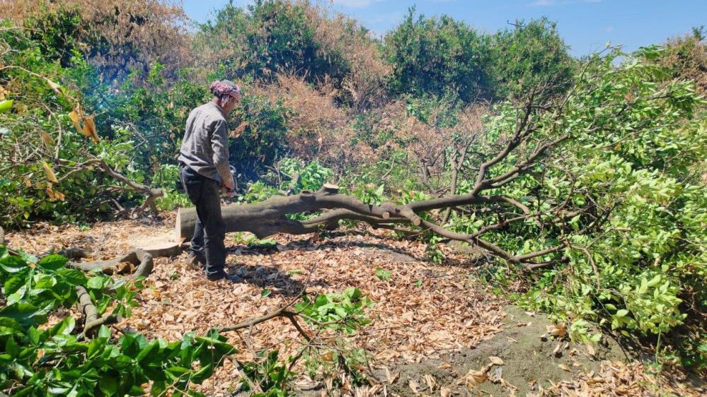 Erzin’de narenciye üreticisi Abbas Demir, don afetinde kuruyan ağaçlarının filizlenmemesi üzerine kesim kararı aldı. Demir, bahçesindeki zararların telafisi için yeni ağaç dikimine hız verdiğini belirtti. “21-25 Şubat tarihlerinde yaşanan don felaketinden sonra ağaçlarımız bir türlü toparlanamadı, filiz vermedi. Tüm imkanlarımızı kullanarak ağaçlarımıza baktık ancak sonuç alamadık. Bu nedenle kuruyan ağaçları kesmek zorunda kaldık.” diyen Demir, üretime devam etme kararlılığını vurguladı.