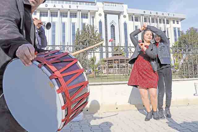 Antakya’da yaklaşık 1,5 yıl süren davanın ardından eşinden boşanan Ayten Kılıç, adliye önünde kutlama yaptı. Antakya’da yaşayan 6 çocuk annesi 39 yaşındaki Kılıç, mahkeme kararıyla eşinden ayrılması, üzerine adliye önününde davul zurna eşliğinde çocuklarıyla halay çekti. Daha sonra kurduğu masaya baklava, kuru pasta ve içecekleri koyan Kılıç, vatandaşlara ikramda bulundu. Boşanmasını kutlayan Ayten Kılıç’a çocukları da destek verdi.