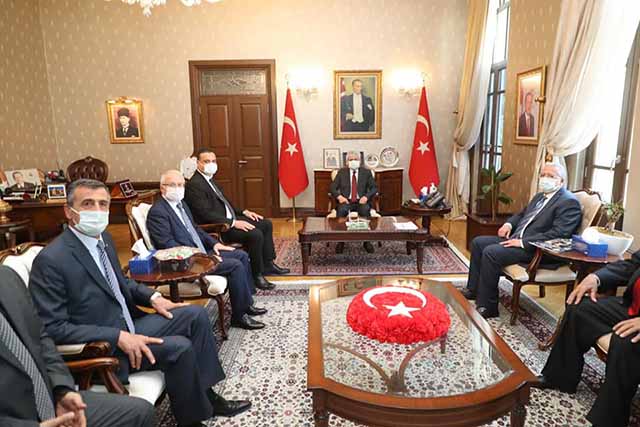 Hatay’daki Esnaf Odalarının Başkanları ile Birlik Başkanından oluşan bir heyet, dün Vali Rahmi Doğan’a nezaket ziyaretinde bulundu. HESOB Başkanı Kadir Teksöz, Hatay’a getirdiği hizmetlerin anısına Vali Doğan’a Şükran Plaketi verdiklerini bildirdi.